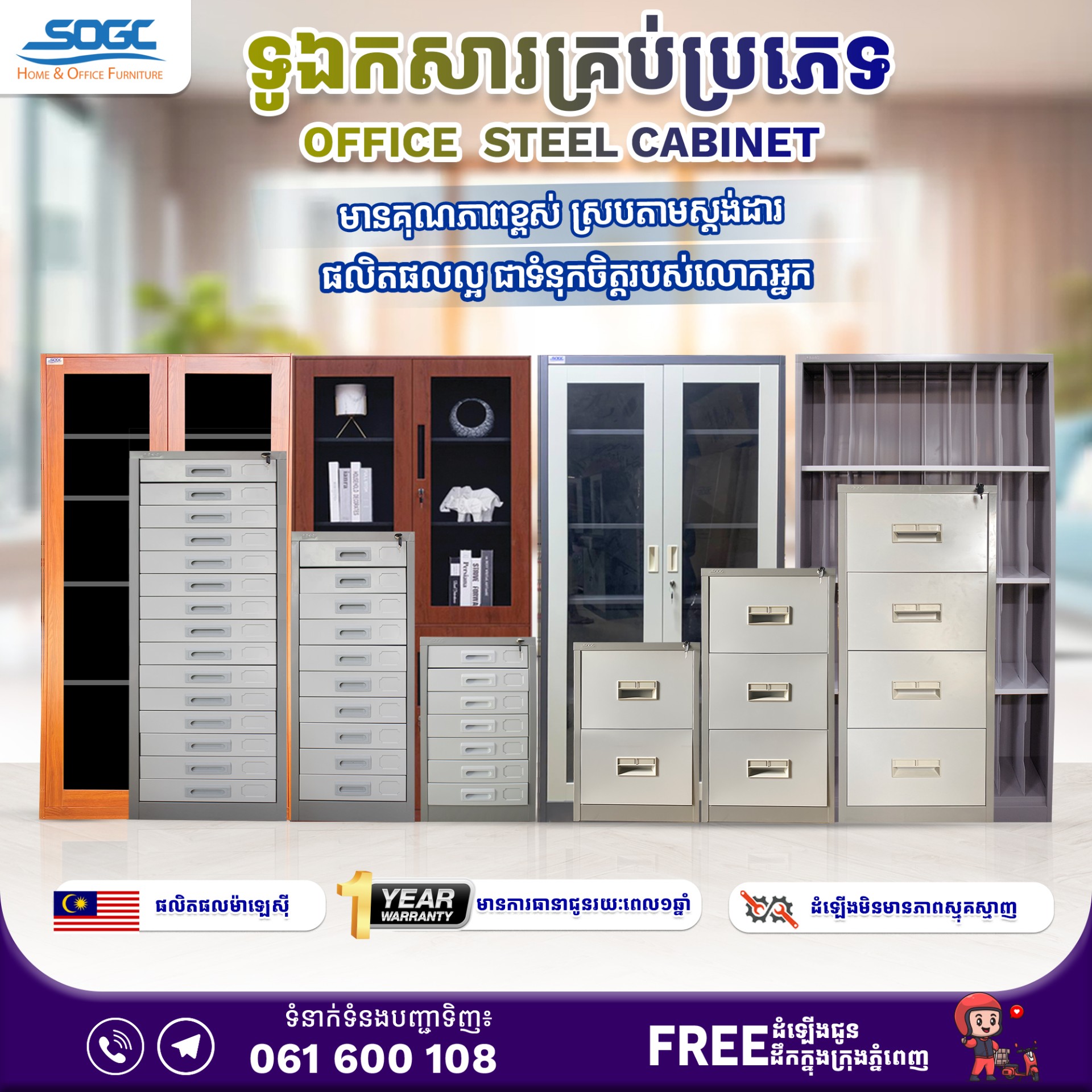 First of all, S.O.G.C(Cambodia) Co., Ltd would like to send you our warmest greetings, good wishes and successes.I am very pleased to announce the excellent performance in the S.O.G.C (Cambodia) Co., Ltd that we were established in 2015. On the other hand, S.O.G.C(Cambodia) Co., Ltd has been providing the different kinds of business, product and services to our clients with Home & Office Furniture and Maintenance Service which are maintenance and change all types of key system for safety boxes. Through our growing and standing strongly with customer, we promise to improve all our products and services as well as to bring more the best quality products to complete the customers' needs.